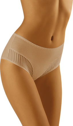 Model eco-QI MAXI, z kolekcie Eco, je maximálne pohodlný, na bežné nosenie. Zadná časť je jednoduchá, hladká. Predná časť je zdobená jemnými prúžkami. Majú bavlnený klin a jemnú gumičku v páse.